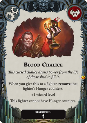 Blood Chalice. This deck does not have any spells in it, however, it does have some useful spell actions. Goarth can be a very useful fighter later in the game being able to heal friendly fighters and damage your opponent. This card also inspires someone for the next round.
